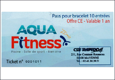 Ce Ticket de Piscine (10 bains) est utilisable à la Piscine AquaFitness à ERNEE.